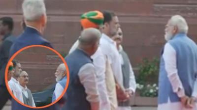 नई दिल्ली। संसद परिसर में शनिवार को ऐसा नजारा देखने को मिला, जिसने सभी का ध्यान अपनी ओर खींचा। प्रधानमंत्री नरेंद्र मोदी और लोकसभा में विपक्ष के नेता राहुल गांधी...