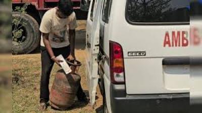 एम्बुलेंस का इस्तेमाल गैस सिलेंडर ढोने में किया गया