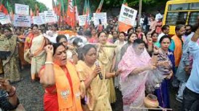 महिलाओं ने धरना दिया, भजन-कीर्तन के साथ विरोध प्रदर्शन