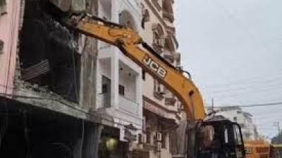 महाकाल लोक क्षेत्र में अवैध मकान-होटलों पर चला बुलडोजर