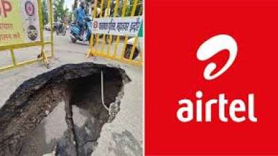 सड़क धंसी, निगम बोला एयरटेल की लापरवाही जिम्मेदार