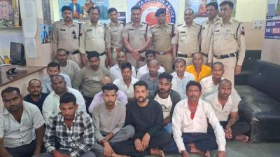 मानपुर में जुए के बड़े अड्डे का खुलासा, 13 लाख रुपए के साथ 18 जुआरी पकड़े गए