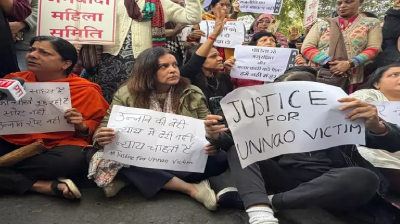 कुलदीप सेंगर को जमानत मिलने पर HC के बाहर महिलाओं ने किया प्रदर्शन