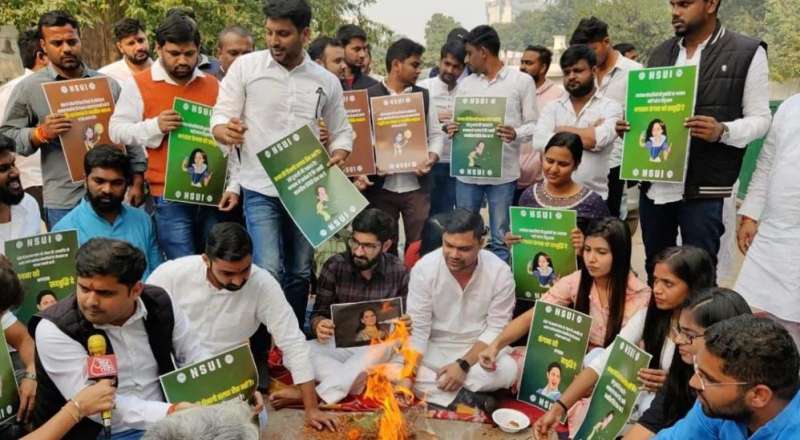 NSUI का विरोध प्रदर्शन: नर्सिंग छात्राओं के समर्थन में सड़क पर उतरे कार्यकर्ता, बारिश में भी डटे रहे