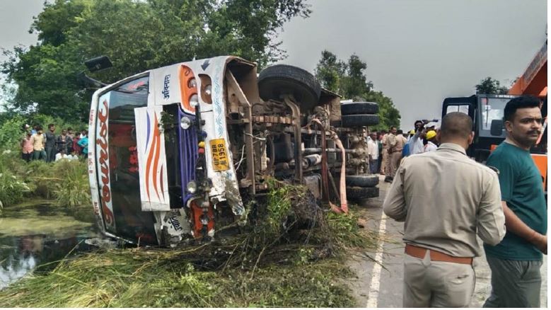 कानपुर में बड़ा सड़क हादसा, स्कूल बस ने बाइक को मारी टक्कर, खाई में पलटने से पिता-पुत्र की मौत, बेटी ICU में
