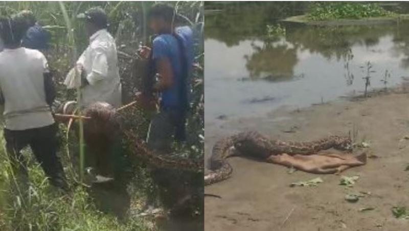 गांव के पास 15 फीट अजगर की मौजूदगी से फैला दहशत का माहौल, सुरक्षा बढ़ाई गई
