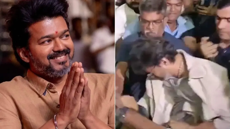 साउथ सिनेमा के सबसे बड़े सुपरस्टार्स में से एक थलपति विजय की एक झलक पाने के लिए फैंस बेताब रहते हैं. इसका एक ताजा उदाहरण हाल ही में चेन्नई एयरपोर्ट पर देखने को मिला है | मलेशिया से लौटने के बाद विजय चेन्नई एयरपोर्ट पर नजर आए |उनकी एक झलक के लिए हजारों की संख्या में फैंस एयरपोर्ट पर जमा हुए थे | हालांकि शोर-शराबे और धक्का-मुक्की के बीच विजय के साथ एयरपोर्ट पर एक हादसा हो गया. इस घटना का वीडियो भी सोशल मीडिया पर काफी वायरल हो रहा है.|