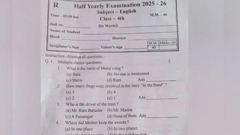 कुत्ते के नाम पर राम का विकल्प देने वाला पेपर सोशल मीडिया पर वायरल हुआ था. जिसको लेकर लोगों ने गुस्सा जाहिर करते हुए कड़ी आलोचना की थी. जिसके बाद अब कार्रवाई शुरू हो गई है. जिला शिक्षा अधिकारी ने पेपर बनाने वाली टीचर को निलंबित कर दिया है. इसके साथ ही अनुभवी शिक्षकों का चयन नहीं करने पर विकासखण्ड शिक्षा अधिकारी को चेतावनी जारी की गई है.