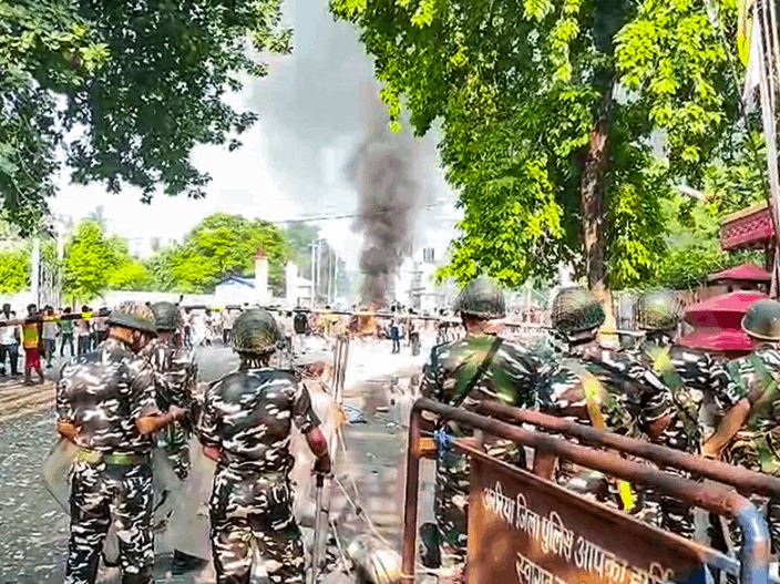 पुलिस के अनुसार, जिला अदालत और सरकारी वकीलों के ऑफिस में भी आग लगाई गई, जिससे कई कागजात नष्ट हो गए।
