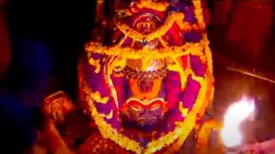 महाकाल मंदिर में आज भस्म आरती के दौरान हनुमान स्वरूप में श्रृंगारित हुए बाबा महाकाल