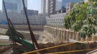 दीवार ढहने से बड़ा हादसा, 60 फीट गहरे बेसमेंट में दबे मजदूर